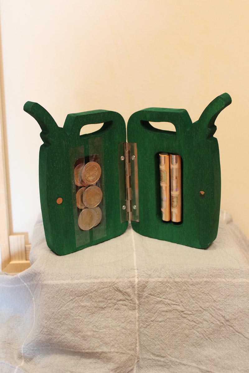 Kreativität und Liebe zum Holz hat dieses Geschenk entstehen lassen. Fall Sie also jemanden Spritgeld zukommen lassen möchten, z.B. für die große Urlaubsfahrt, wäre das eine schöne Verpackung mit Herz.