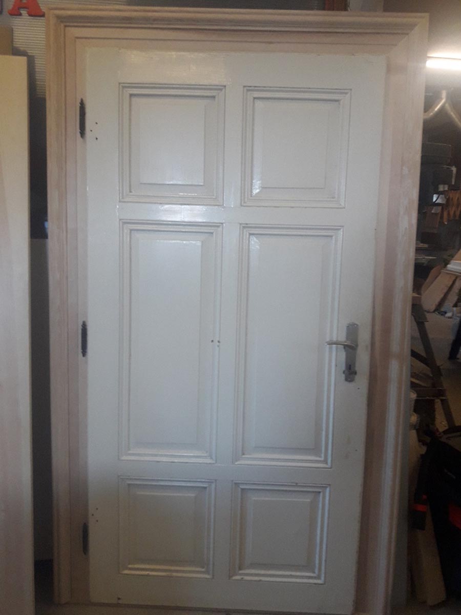 In der Zwischenzeit wurde das Türblatt und die Beschläge durch unsere Partnerfirma überarbeitet und neu lackiert.