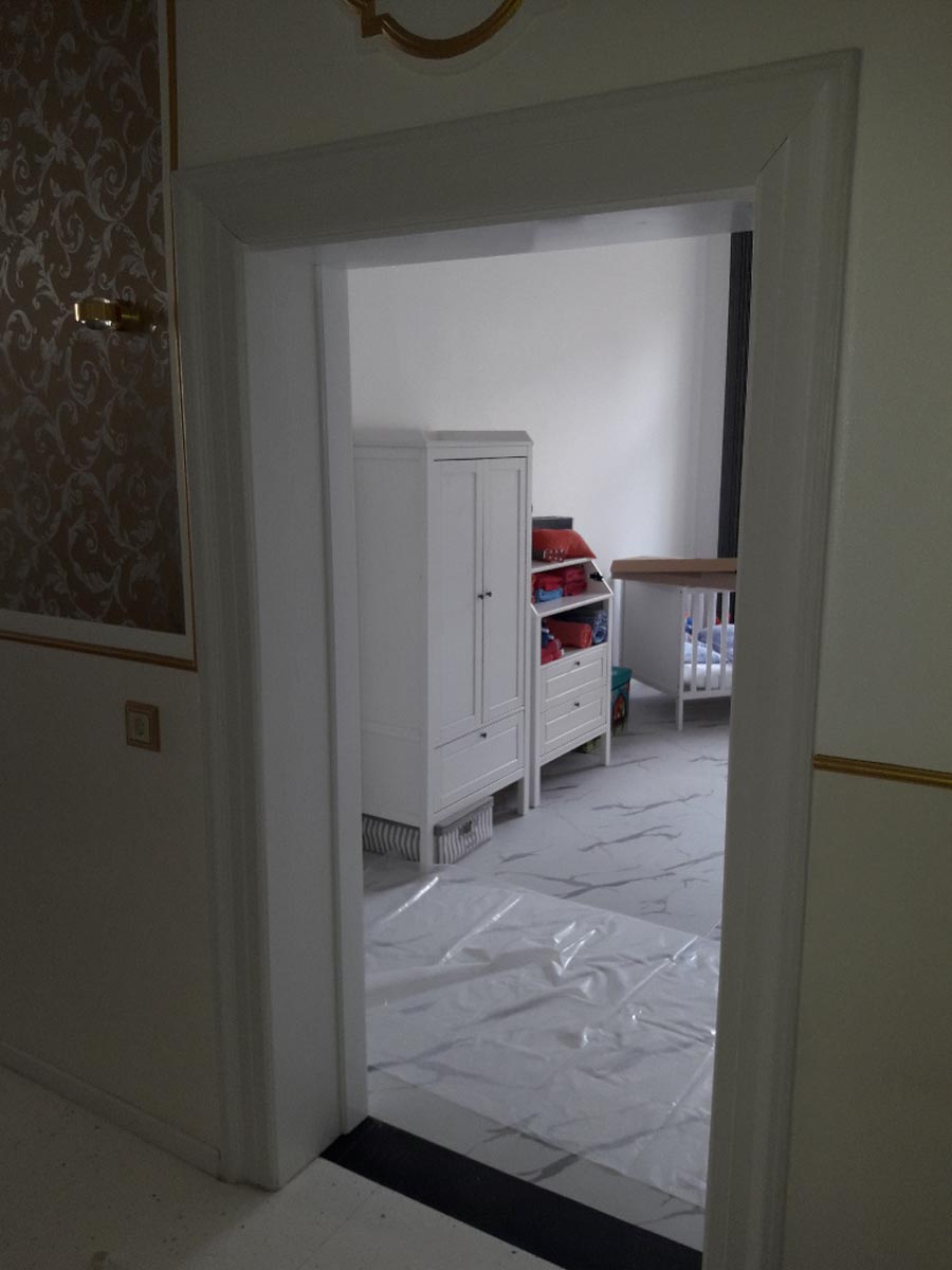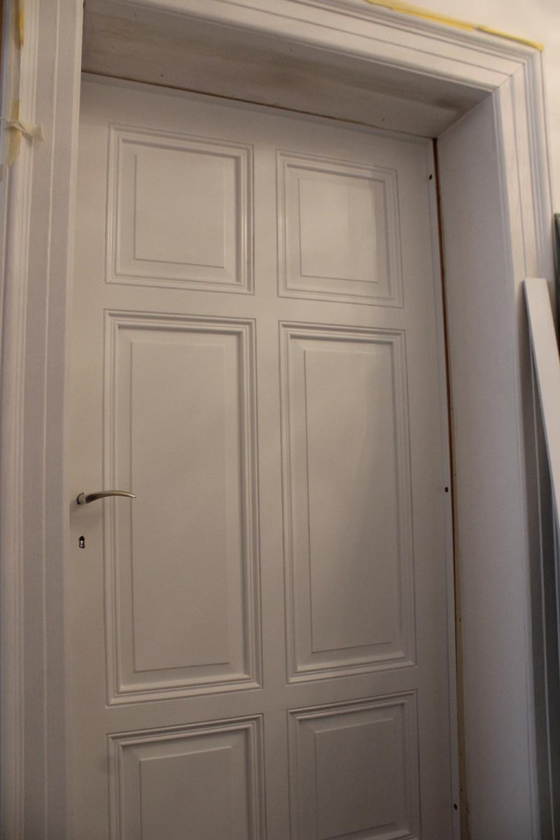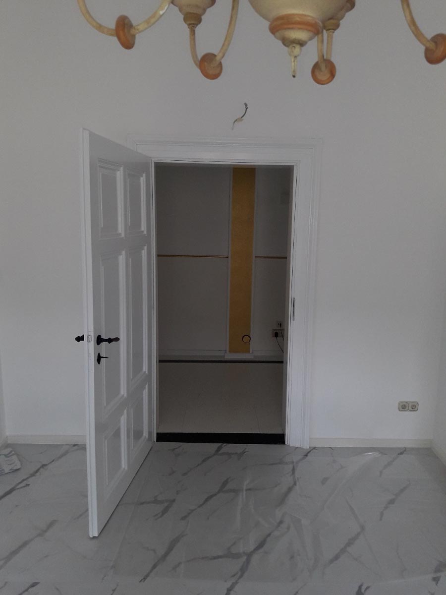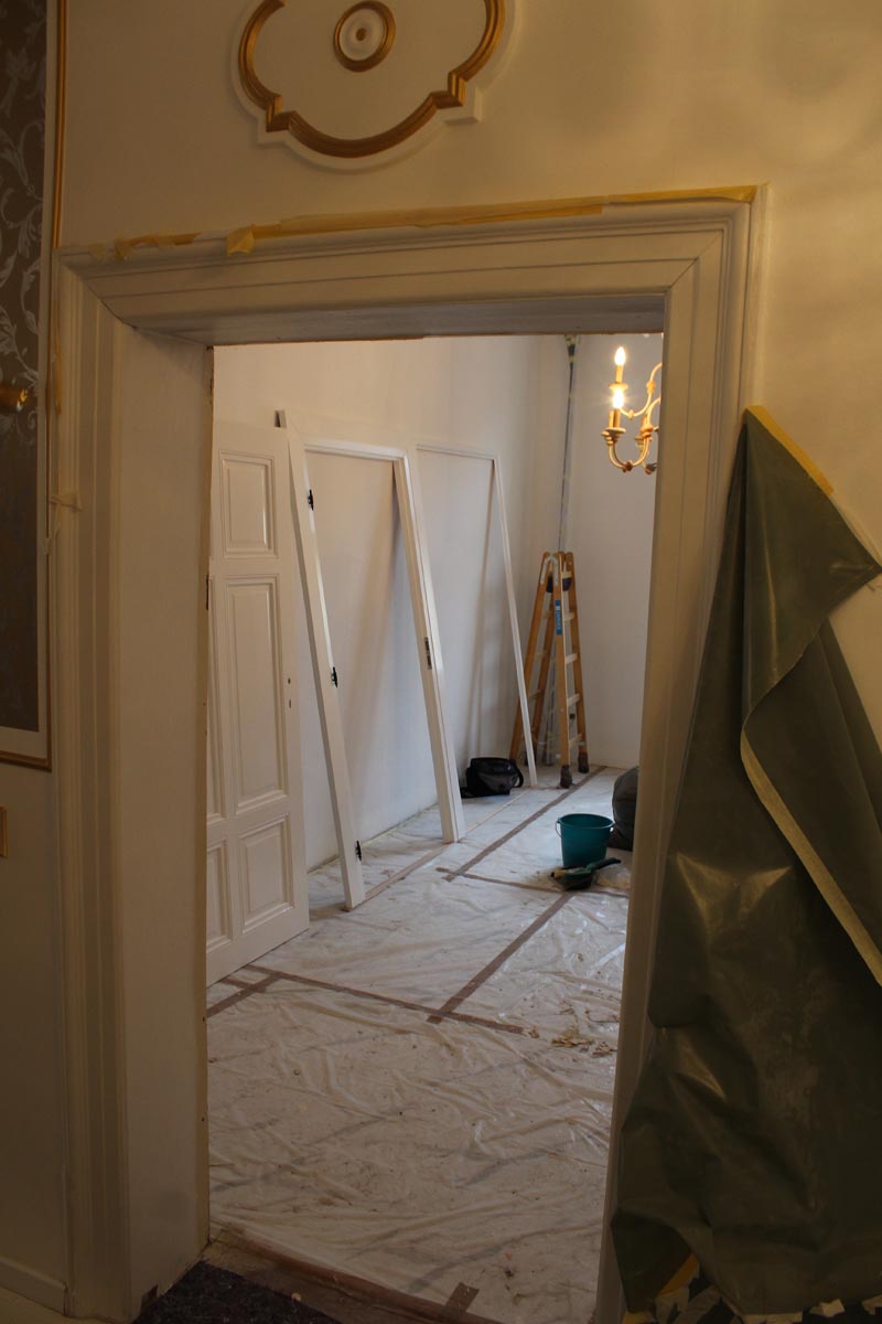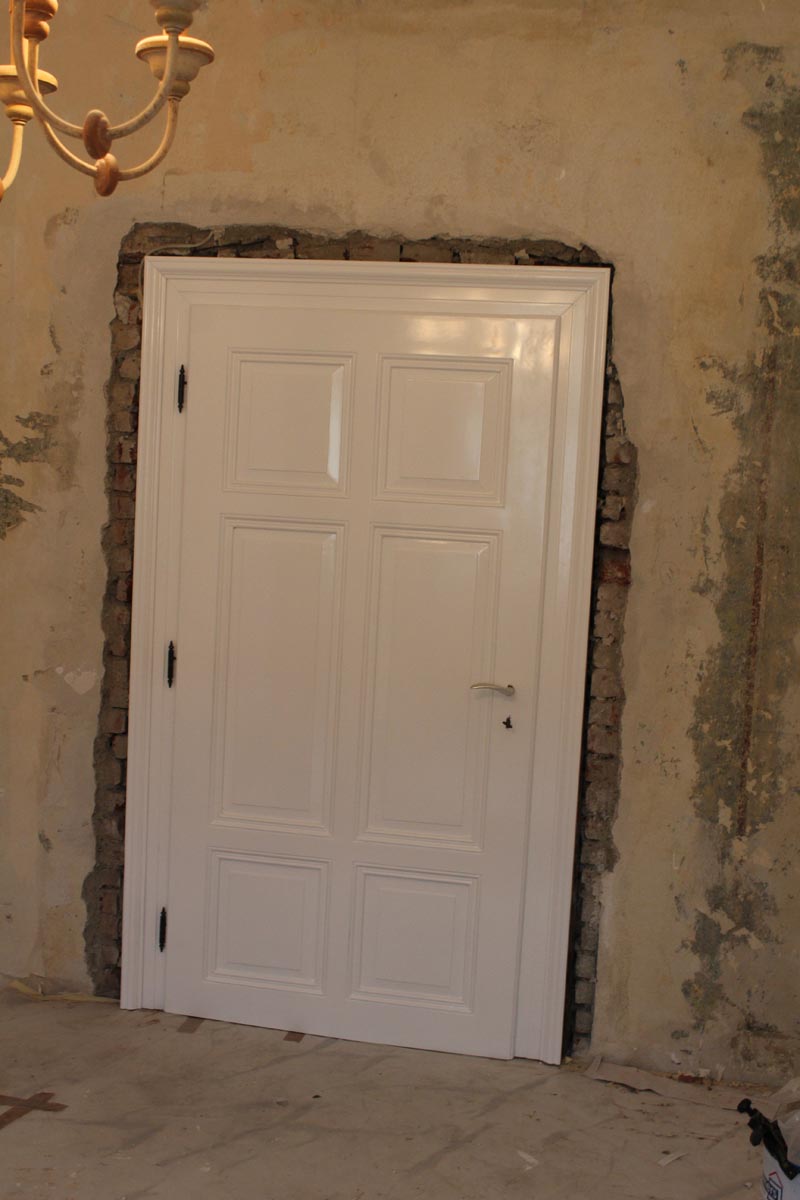 Vorhanden war lediglich das Türblatt, sowie die Zierverkleidung in der Wand. Der restliche Durchgang war mit Trockenbau verschlossen.
