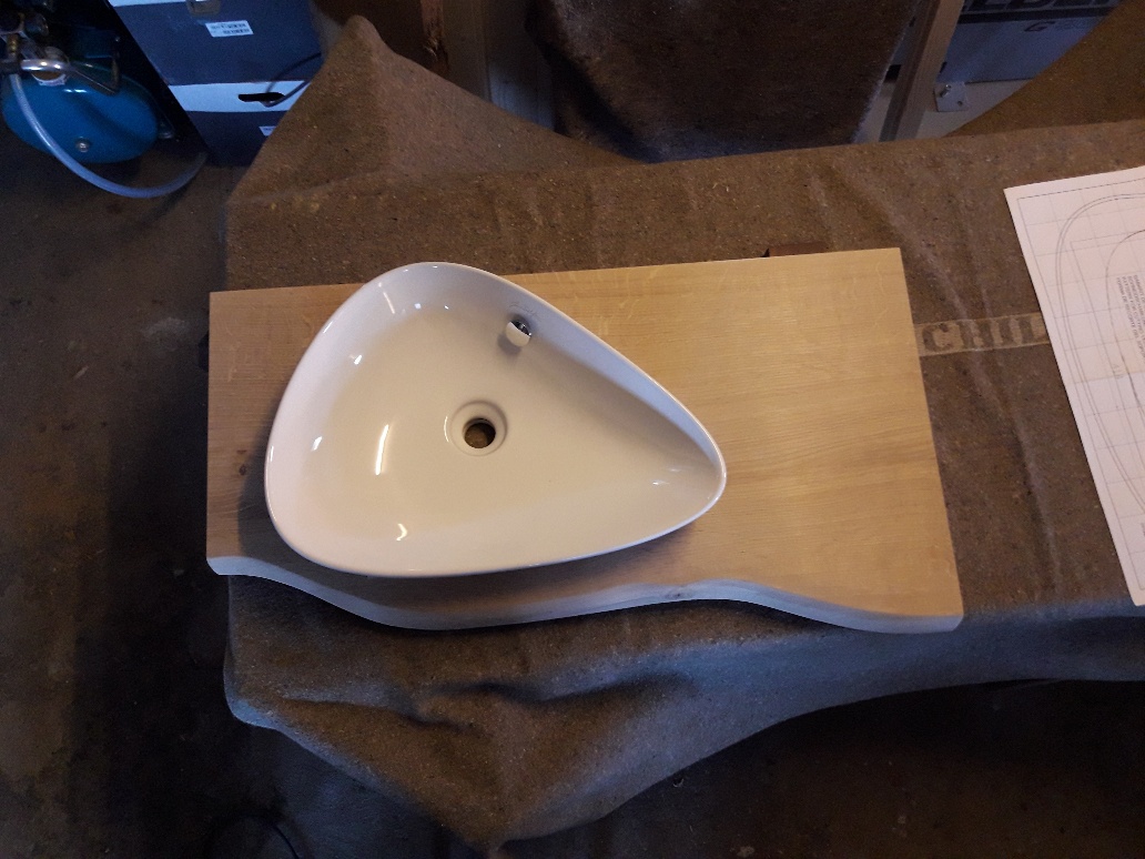 Waschbecken mit naturbelassener Platte