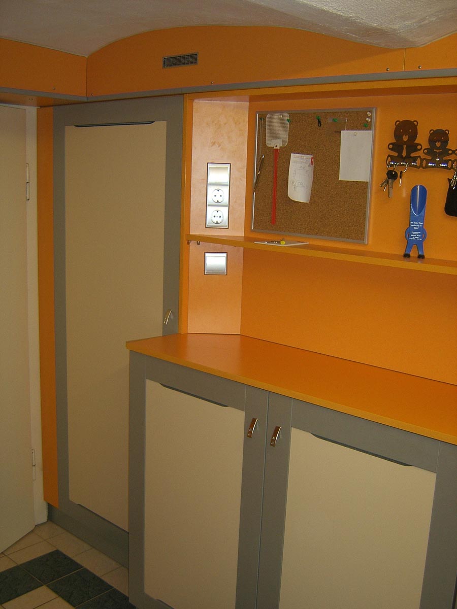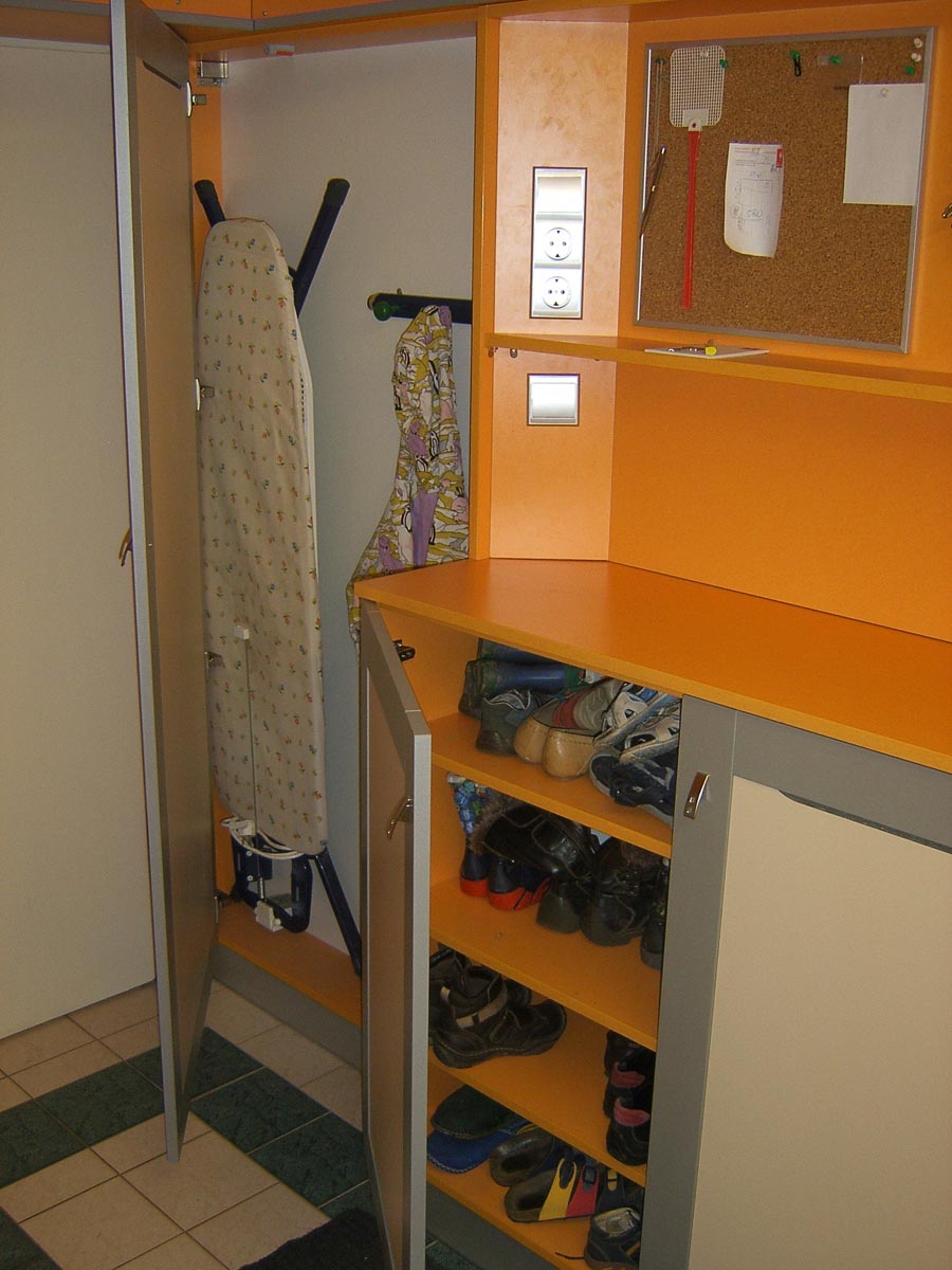 Bei diesem Projekt wurde zusätzlicher Stauraum für die Waschküche praktisch eingebaut. Es entstanden Stauraum und Regale für alles, was dort benötigt wird. Dabei wurde auch daran gedacht, dass die Zugänge zu Strom- und Wasseranschlüssen verdeckt sind, trotzdem aber gut und einfach erreichbar sind.