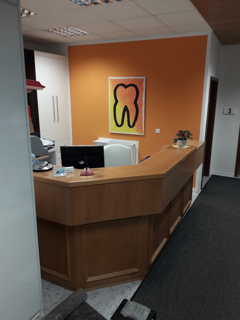 In dieser Praxis wurde der Einbauschrank erhalten und lediglich mit neuen Türen und Schubkästen ausgestattet. Der Schrankkörper wurde ebenfalls den neuen Blenden und Türen angepasst.